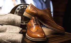 濱口社長の足元には、磨きあげられた革靴が光っている。