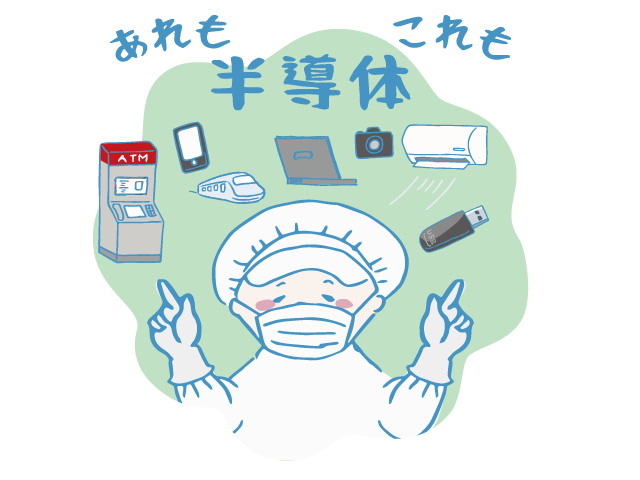 半導体は私たちの暮らしの中ですんごく活躍しています。たとえば、エアコン・炊飯器など身近にある電化製品、フラッシュメモリと呼ばれるスマートフォン・デジカメなどに内蔵されているSSDやUSBなどの記録媒体から、銀行ATMや電車の運行などの社会的インフラまで。普段わたしたちが気づかないところで、半導体にはとってもお世話になっているんです。もし半導体が正しく動かなくなってしまったら、今のような便利な生活とはおさらば。瞬時に社会は混乱の渦に飲み込まれていくでしょう。いまや、あらゆる産業において半導体はなくてはならない部品なんですね。また、自動車の自動運転や、IT技術等を使って人々の暮らしをより便利にするDX(デジタルフォーメーション)化、現在世界で注目されているメタバース(仮想空間)の普及、半導体メモリ市場ではクラウドサービスの浸透やAI学習データの蓄積などによるメモリ容量の拡大など、さらに半導体を必要とする未来がこれから待っています。地球上の全人類はますます半導体に依存した生活を送ることになるんですね。つまり半導体業界はこの先も成長確実・大好況・超安定した業界になると言えるでしょう!